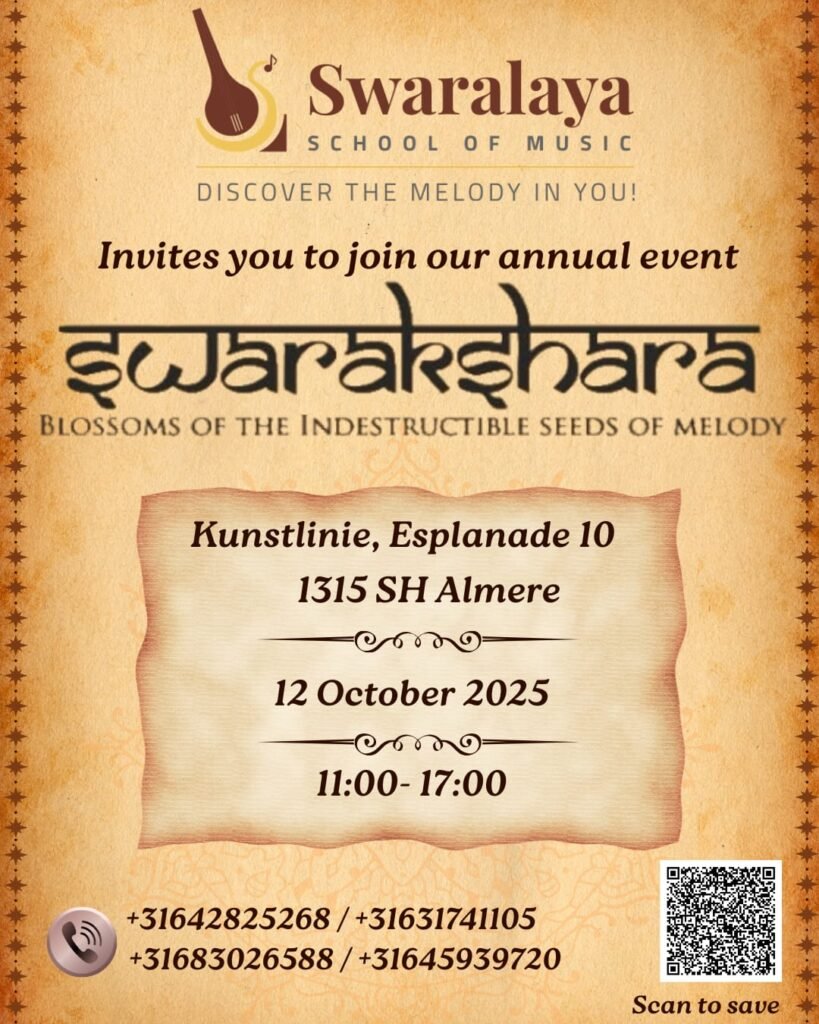 Swarakshara - Blossoms of the Indestructible Seeds of Melody" - is the annual day of Swaralaya School of Music. It is a unique offering where the performances are exclusively by the students of the school and they will be accompanied by a professional set of musicians.